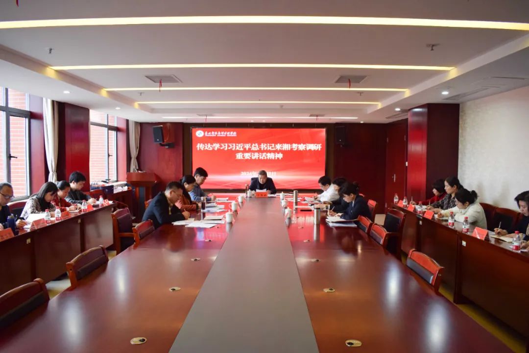 会上,传达学习了习近平总书记在湖南考察时的重要讲话和指示精神、在听取湖南省委和省政府工作汇报时的重要讲话精神,以及在新时代推动中部地区崛起座谈会上的重要讲话精神。